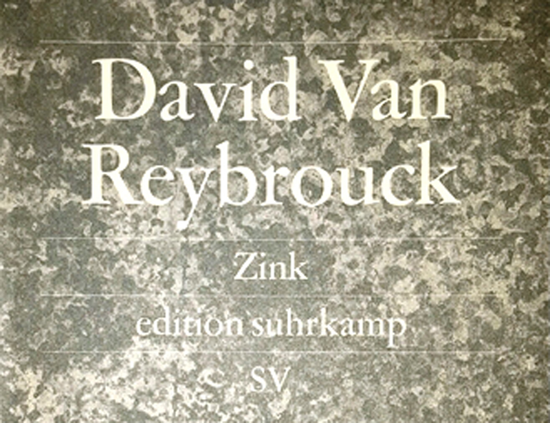 Erschienen ist das Buch „Zink“ von David van Reybrouck 2017 im Suhrkamp Verlag (Sonderdruck edition suhrkamp, ISBN 978-3-518-07290-5).