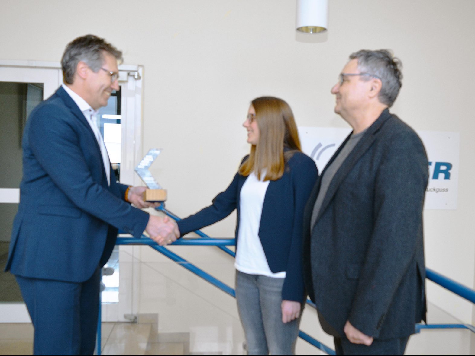 Preisverleihung im Hause Kaspar Lüther GmbH & Co. KG in Gunzenhausen (v.l.n.r. Frank Neumann, Miriam Lüther und Axel Lüther)