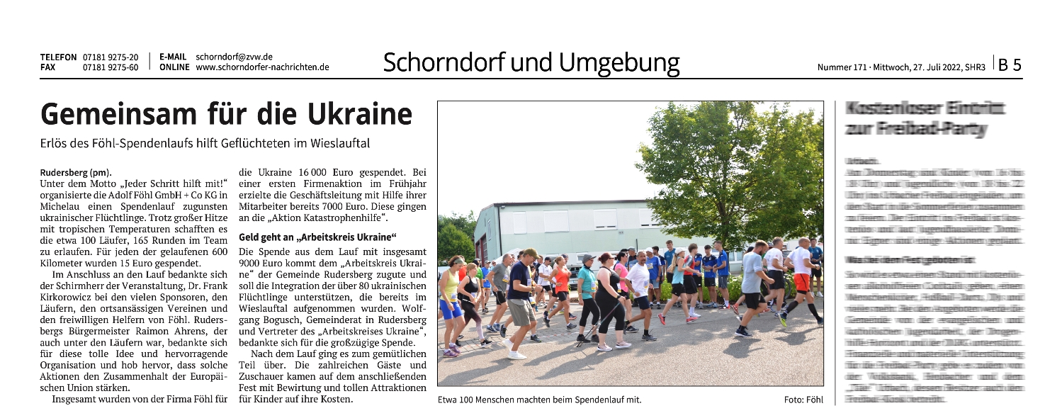 Bericht aus Schorndorfer-Nachrichten, 27.07.2022, zur Verfügung gestellt von der FÖHL GmbH + Co. KG